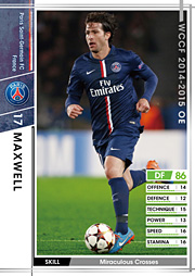 DF MAXWELLマクスウェル 022 パリ・サンジェルマンFC OFF DEF TEC POW SPE STA 14 12 15 13 16 16 SKILL Miraculous Crosses / 変幻自在のクロスボール