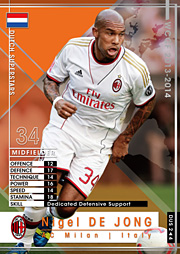 MF Nigel DE JONGナイジェル・デ・ヨング DUS2 ACミラン OFF DEF TEC POW SPE STA 12 17 14 16 14 18 SKILL Dedicated Defensive Support / 熟練労働者